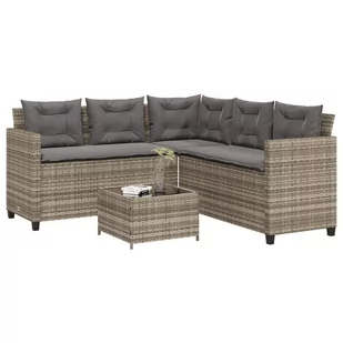 vidaXL Narożnik ogrodowy z poduszkami i stolikiem, rattan PE, szary