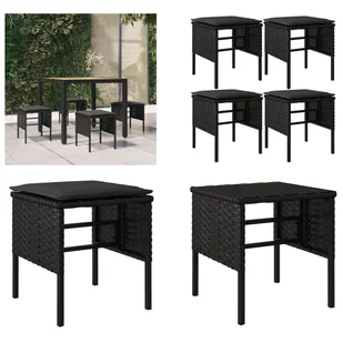 Stołki ogrodowe z poduszkami 4 szt. czarny polirattanZrelaksuj się i ciesz się przestrzenią na zewnątrz dzięki tym stołkom ogrodowym!Trwały materiał: rattan PE, znany również jako polirattan, jest odporny na warunki atmosferyczne i łatwy w pielęgnacji. Jego powierzchnia zachowuje atrakcyjny wygląd przez długi czas. Jest bardziej opłacalny niż inne materiały, a jednocześnie oferuje wysoką jakość, komfort i estetyczny wygląd.