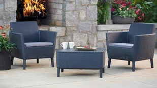 Opis: Nowoczesny, opływowy kształt, wygoda i wysoka jakość wykonania to główne atuty balkonowego zestawu Salemo. W skład kompletu wchodzą dwa obszerne fotele oraz stolik z funkcją schowka. Faktura powierzchni imitująca naturalny, rattanowy splot podwyższa walory estetyczne produktu. Meble są łatwe w utrzymaniu w czystości, proste w montażu i odporne na działanie niekorzystnych warunków pogodowych. Cechy: w skład zestawu wchodzą 2 wygodne fotele oraz funkcjonalny kawowy stolik całość wykonana została z najwyższej jakości polipropylenu w odcieniu grafitowym o strukturze naturalnego rattanu, RATTAN EFEKT! zestaw jest odporny na niekorzystne działanie warunków atmosferycznych niestraszny mu deszcz, śnieg i promieniowanie UV, nie wymaga też żadnych specjalnych zabiegów konserwacyjnych o dodatkową wygodę dbają wygodne i wytrzymałe poduszki z zamkiem błyskawicznym meble są solidnie wykonane i z pewnością posłużą przez długi czas łatwo je też czyścić, do pielęgnacji wystarczy jedynie zwykła woda, ewentualnie łagodne środki czyszczące doskonale sprawdza się w codziennym użytkowaniu komplet przeznaczony jest do łatwego, samodzielnego montażu na podstawie załączonej instrukcji Wymiary: