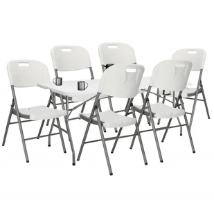 Zestaw cateringowy turystyczny stół 180x74 cm z 6 krzesłami składany na bankiet biały