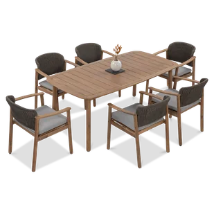 Odkryj niepowtarzalny klimat spędzania wolnego czasu na świeżym powietrzu z zestawem jadalnianym Dover 6+1 Dining - Furrore. To niezwykłe połączenie funkcjonalności, wygody i designerskiego stylu, które sprawią, że Twój ogród stanie się miejscem pełnym elegancji i prestiżu. Zainwestuj w komfort, estetykę i niezwykłość, spełniając oczekiwania najbardziej wymagających klientów. Zestaw jadalniany Dover 6+1 Dining - Furrore - bo Twój ogród zasługuje na to, aby być miejscem wyjątkowym! Przenieś się w świat luksusu i relaksu, zaznaczając swój niepowtarzalny styl. Stół o długości 180 cm z naturalnego drewna akacjowego w kolorze teak to serce zestawu, emanujące egzotycznym klimatem, jak z bajecznych wakacji na Bali.