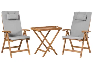 Drewniany zestaw typu bistro. Zasiądź wygodnie do porannej kawy dzięki temu klasycznemu zestawowi mebli balkonowych z poduszkami. Wykonanie z wysokiej jakośc...