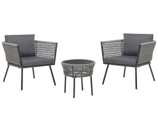 Ciesz się pięknymi chwilami, siedząc w tych wygodnych fotelach. Wsparte na stalowej ramie, są stabilne i solidne. Poduszki ze zdejmowanymi poszewkami są nie tylko wygodne, ale również odporne na promieniowanie UV, a ich czyszczenie nie powinno być problemem. Dodatkowo zestaw uzupełnia stolik kawowy, który jest praktycznym i stylowym meblem.