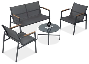 Szerokość siedziska 112cm, wysokość siedziska 38cm oraz głębokość siedziska 45cm sprawiają, że relaks staje się sztuką. Dodatkowo, drewno polywood na podłokietnikach podkreśla wyjątkowy charakter całego zestawu. MANGO CAFFE to nie tylko meble ogrodowe, to rytuał relaksu na świeżym powietrzu. Wejdź w świat wyjątkowego designu, połączonego z funkcjonalnością i pozwól, by Twój ogród stał się miejscem, gdzie każdy moment staje się niezapomniany. CechyKomplet składa się z wygodnej, dwuosobowej sofy, dwóch foteli oraz stolika kawowegoKonstrukcja mebla wykonana została ze stali galwanizowanejMebel pokryty jest specjalną tkaniną textilene, odporną na warunki atmosferyczneDekoracyjne podłokietniki swój estetyczny wygląd zawdzięczają wykończeniu z drewna polywoodStół pokryty jest 5mm szkłem hartowanym, dzięki któremu zachowa swoje właściwości na lata WymiarySofa: