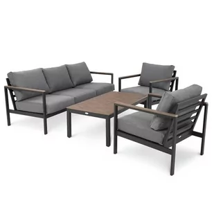 Zestaw ogrodowy Tivoli marki di volio z aluminiową ramą. Duża, trzyosobowa sofa, dwa fotele i stolik, miękkie i wygodne grafitowe poduszki. Całość wykończona...