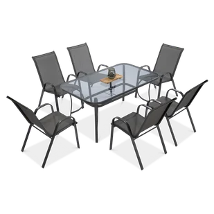 Zestaw mebli ogrodowych BOLOGNA 150/6 Light GreyFocus Garden Serdecznie zapraszamy do zakupu Zestawu Mebli Ogrodowych Bologna 150/6 w kolorze Light Grey. Ten kompletny zestaw mebli ogrodowych jest idealny dla osób poszukujących niedrogiego, estetycznego i praktycznego rozwiązania do swojego ogrodu, tarasu czy działki. Zestaw składa się z 6 dużych i wygodnych krzeseł oraz prostokątnego stołu. Konstrukcja mebli została wykonana z wytrzymałej i malowanej stali, która zapewnia solidność i trwałość. Krzesła zostały wykończone tkaniną Textilene, która gwarantuje wygodę siedzenia bez potrzeby stosowania poduszek.