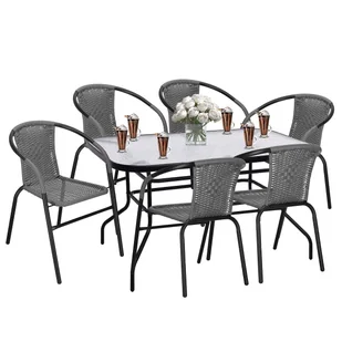 Zestaw mebli ogrodowych stół prostokątny i 6 krzeseł metalowych komplet czarno-szary