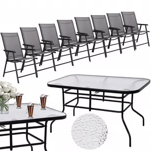 Zestaw mebli ogrodowych stół ze szkłem hartowanym, 8 krzeseł komplet na taras czarno-szary