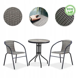 Komplet mebli ogrodowych stolik z hartowanym blatem + 2 krzesła z technorattanu brązowe Idealny do ogrodu, na taras i balkon Dwa wygodne krzesła, wykonane z ...