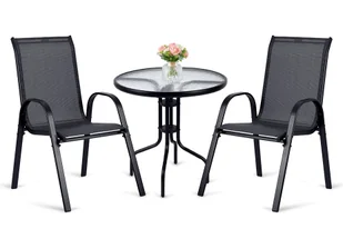 ✅ Trwałość i odporność na warunki atmosferyczne – blat stołu wykonany z hartowanego szkła, a konstrukcja ze stali nierdzewnej gwarantują wytrzymałość na deszcz, promieniowanie UV i zmienne temperatury.