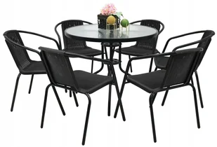 ZESTAW MEBLI OGRODOWYCH 6x Krzesło Loretto CZARNE + Stół FI90 Funkcjonalne i wygodne meble ogrodowe ☑️ Znakomicie sprawdzą się w: ✔️ altanach ✔️ na tarasach ...