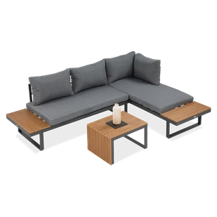 Dzięki modularnej konstrukcji możesz dowolnie aranżować przestrzeń, dostosowując ją do swoich potrzeb i wymagań. Niech Twój ogród, taras czy patio stanie się miejscem, gdzie marzenia o idealnym wypoczynku stają się rzeczywistością. W centrum uwagi stoi stolik z blatem imitującym drewniane deski, który dodaje narożnikowi niepowtarzalnego uroku. To nie tylko praktyczny element, ale także wyraz klasy i gustu. Wyobraź sobie chwile spędzone przy filiżance ulubionej kawy czy pysznego drinka, mając wszystko w zasięgu ręki.