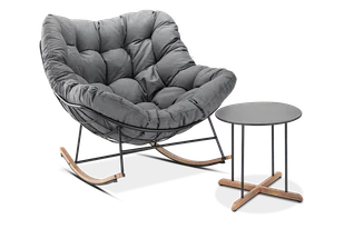 Zestaw na taras RONDA 1+1 Dark Grey - FOCUS GARDEN - Zestaw tarasowy Focus Garden RONDA 1+1 Dark Grey to propozycja dla osób, które cenią sobie luksusowe detale i niezawodną jakość. Zestaw składa się z fotela bujanego Ronda w kolorze Dark Grey oraz stylowego stolika ogrodowego. Komplet Ronda to idealne rozwiązanie również na taras lub większy balkon. Stalowa konstrukcja z malowanym proszkowo wykończeniem zapewnia nie tylko solidność, ale również odporność na czynniki atmosferyczne, w tym deszcz, słońce czy wilgoć. Dzięki temu meble zachowują swój urok i stan techniczny przez długie lata.