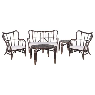 Ręcznie wykonany zestaw rattanowy w kolorze ciemnego drewna. Ten przestronny i dekoracyjnie zaprojektowany zestaw rattanowy ożywi Twój ogród i zagwarantuje mnóstwo miejsca do siedzenia podczas grillowania i poranków przy kawie. Zestaw składa się ze stolika kawowego, dwóch wygodnych foteli, sofy i kompaktowego stolika bocznego. Pięknie wyprofilowane podłokietniki i oparcia mebli do siedzenia są niezwykle zachęcające i wygodne. Dzięki zdejmowanym poszewkom na poduszki, meble są łatwe w czyszczeniu i stanowią doskonały wybór dla rodzin z małymi dziećmi i zwierzętami.