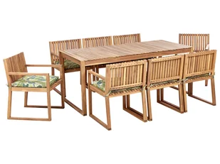 BELIANI Zestaw mebli ogrodowych jasne certyfikowane drewno akacjowe stół i 8 krzeseł z zielonymi poduchami w liście