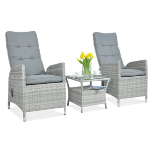 Zestaw wypoczynkowy MALTA DUO Stone GreyFocus Garden Zestaw Wypoczynkowy Malta Duo Stone Grey - wygodny komplet wypoczynkowy dla 2 osób, idealny zarówno do użytku zewnętrznego, jak i wewnętrznego. Składa się z dwóch wygodnych foteli z regulowanymi oparciami oraz funkcjonalnego stołu kawowego. Fotele posiadają płynną, hydrauliczną regulację kąta nachylenia, zapewniając maksymalny komfort i relaks. Konstrukcja ze stali gwarantuje trwałość, a wykończenie technorattanowe w kolorze szarym dodaje modnego wyglądu. Meble są odporne na promieniowanie UV i opady atmosferyczne, a do ich czyszczenia wystarczy wilgotna ściereczka.