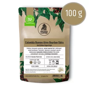 Jasno palona arabika Single Origin z Kolumbii, która została poddana obróbce naturalnej. Kawa Ingagi Coffee Colombia Buenos Aires Bourbon Sidra charakteryzuje się złożonym smakiem, w którym odnajdziemy nuty czerwonych owoców, brzoskwini oraz aromat liczi.