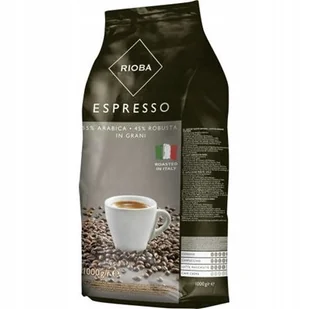Kawa ziarnista Espresso Silver 1kg - Rioba kawa Arabica: 55 %, kawa Robusta: 45 %, kofeina - mniej niż: 2,1 % Opakowanie 1 kg RIOBA Espresso 55% Arabica + 45% Robusta. Dawniej RIOBA Silver.