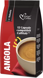 12 kapsułek kompatybilnych z systemem Tchibo Cafissimo - kawa Tchibo. Angola - 100% Robusta Monorigine Kawa Tchibo w kapsułkach Angola powstała z palenia ziaren Robusty pochodzących w upraw w Angoli w Afryce. Charakteryzuje się gęstą konsystencją oraz mocnym, zdecydowanym smakiem z nutami kakaowymi. Robusta i Arabika to dwie najpopularniejsze odmiany kaw. Robusta jest ceniona przez wielbicieli kawy przede wszystkim ze względu na wysoką zawartość kofeiny i wyrazisty smak.