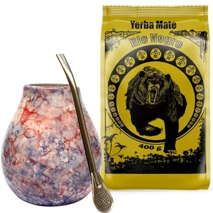 tradycyjna argentyńska yerba mate bez żadnych dodatków smakowych. Opakowanie zawiera po prostu 100% mocnej, ale pysznej yerba mate! Rio to wysokiej jakości, szlachetna odmiana yerba mate produkowana zgodnie z argentyńską tradycjąMATE-TEE MUG Caleidoscope to ceramiczna tykwa o pojemności około 350 ml. Jest podwójnie przeszklona, doskonale leży w dłoni i dobrze utrzymuje temperaturę napoju. Można go myć w zmywarce. pOJEMNOŚĆ: