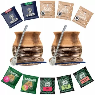 Zestaw startowy dla dwojga yerba mate Chcesz rozpocząć przygodę z yerba mate i szukasz czegoś na początek? Jeżeli tak, to trafiłeś we właściwe miejsce! Oferowany na aukcji zestaw wyposaży Cię we wszystko, co niezbędne by zagłębić się w fascynujący i bogaty świat mateizmu. Zestaw zawiera: 10x próbki yerba mate 50g 2x Tykwę ceramiczną 2x Bombillę 2x Czyścik 2x Podkładkę korkową A zatem nie zwlekaj - już teraz możesz dołączyć do stale powiększającego się grona miłośników yerba mate! Zestaw próbek Yerba Mate 10 x Yerba Mate 50g: Guarani Energia 50g Guarani Silueta 50g Soul Mate Orgánica Menta Limon 50g (organiczna) Soul Mate Orgánica Despalada 50g (organiczna) Soul Mate Orgánica Energia 50g (organiczna) Yaguar Rosada 50g Yaguar Frutas Dulces 50g Verde Mate Green Fresa 50g Verde Mate Green Guayusa Jazmín 50g Verde Mate Green Melón de Agua 50g 2x 50g Yerba Mate Guarani Guarani to wyrazista i mocno pobudzająca yerba mate w prawdziwie paragwajskim stylu. Jej szlachetnie goryczkowy smak i cenne właściwości to kwintesencja tego, co najlepsze w mateistycznych tradycjach Ameryki Południowej.