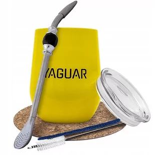 Zestaw startowy yerba mate Oferowany na aukcji zestaw wyposaży Cię we wszystko, co niezbędne by zagłębić się w fascynujący i bogaty świat mateizmu. Zestaw zawiera: TermoLid – stalowe matero z pokrywką – motyw Yaguar Bombilla Grande z kamieniem - czarna Podkładkę korkową Czyścik do bombilli A zatem nie zwlekaj - już teraz możesz dołączyć do stale powiększającego się grona miłośników yerba mate! TermoLid – stalowe matero z pokrywką – motyw Yaguar (żółty) – 350 ml TermoLid (kolor żółty; motyw Yaguar) to niezwykłe matero do yerba mate stworzone na zlecenie marki Cebador. Ze względu na zastosowanie podwójnych ścianek (double wall), cechuje się doskonałymi właściwościami termoizolacyjnymi. Utrzymuje pożądaną temperaturę przez dłuższy czas niż standardowe matero.