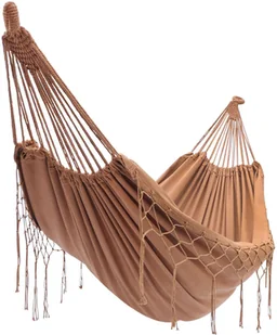 Dwuosobowy hamak ogrodowy z frędzlami w stylu boho BRĄZOWY