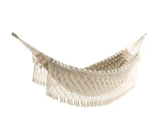 Hamak dwuosobowy Brazilian zapewni użytkownikom komfortowy wypoczynek. wykonany w 100% z brazylijskiej bawełny przewiewna, oddychająca tkanina misternie szydełkowane frędzle może pomieścić 2 osoby dorosłe maksymalne obciążenie: 250 kg kolor: beżowy, czarny, brązowy materiał: bawełna waga: