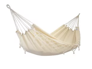 Wyglądem i miękkością jest nie do odróżnienia od 100% bawełny. W porównaniu do niej daje korzyści, które zwiększają komfort dla klienta. Dzięki zastosowanej tkaninie hamak może być narażony na działanie deszczu, słońca, wiatru, a nawet mrozu, bez naruszania jego wyglądu, siły, wytrzymałości i trwałości. Połóż się na nim, zamknij oczy i zrelaksuj! Specyfikacja techniczna - Wymiary materiału [cm] : 200x140 , Długość całkowita [cm] :