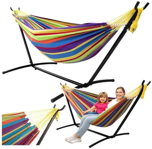 Hamak Ogrodowy Ze Stelażem Dwuosobowy Kolorowy 200x120 LEAN
