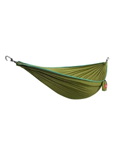 Hamak Grand Trunk TrunkTech Double - green/aqua - najważniejsze cechy: Wykonany z nylonu ripstop o gęstości 40D;Potrójne szwy;Tkanina przyjemna w dotyku;Szybkoschnący i lekki materiał;W zestawie dwa aluminiowe karabinki;Worek transportowy jest jednocześnie kieszenią na najcenniejsze przedmioty;Odblaskowe zakończenia pętli.