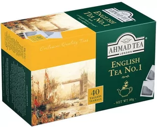 Ahmad Tea English Tea No. 1 Herbata czarna 40 torebek bez zawieszki PRODUKT NATURALNY, WYSOKIEJ JAKOŚCI English Breakfast No 1 to świeża i elegancka czarna herbata z subtelną nutą bergamotki. Zmieszana, aby dać delikatnie zrównoważony napar, jest herbatą dla tych, którzy lubią drobniejsze rzeczy w życiu. Dzięki najwyższej jakości, doskonale dobranym składnikom oraz odpowiedniemu procesowi kontroli konsumenci utrzymują pyszną w smaku herbatę, która zachwyca głębią aromatu. Mistrzowie Herbaty równoważą herbaty cejlońskie, kenijskie i asamskie dla tej mieszanki.