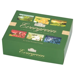 Ahmad Tea Evergreen zestaw 10 x 6 smaków herbat zielonych 60 torebek aluminiowych