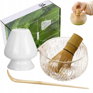 ZESTAW DO HERBATY MATCHA SZKLANA MISKA TRZEPACZKA DO HERBATY ŁYŻECZKA 4SZT