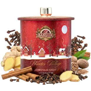 BASILUR Christmas Night ŚWIĄTECZNA czarna herbata LIŚCIASTA, cynamon, goździki, imbir, w metalowej PUSZCE NA PREZENT 100g Czarna herbata Basilur Winter Villa...