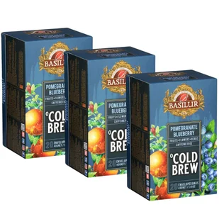 BASILUR Cold Brew - Owocowa herbata bezkofeinowa z aromatem granatu i borówki, herbata na zimno w saszetkach 20 x 2 g x3