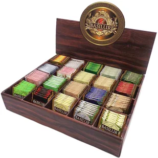 Ekskluzywny Prezentowy Zestaw Herbat (20 smaków). Ten ekskluzywny prezenter zawiera aż 20 różnych, wyjątkowych herbat. Dzięki eleganckiemu designowi ekspozytor pasuje do każdego wnętrza – idealny do kawiarni, biura, restauracji czy podczas spotkań firmowych. To nie tylko praktyczny organizer, ale także elegancka dekoracja i doskonały pomysł na prezent.