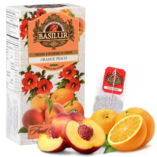 BASILUR Fruit Infusions to owocowa herbata bezkofeinowa z aromatem pomarańczy, brzoskwini i cytryny, dostępna w 25 ekspresowych torebkach po 2g każda. Ta wyj...