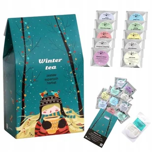 ZESTAW PREZENTOWY MIX 10 RÓŻNYCH ZIMOWYCH HERBAT SYPANYCH LIŚCIASTYCH W SASZETKACH + ZAPARZACZ BAWEŁNIANY - BOX PREMIUM IDEALNY NA PREZENT UPOMINEK