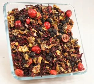 250 g doskonałej, całkowicie owocowej herbaty o składzie: żurawiny, aronia, jabłko, skórka róży, wiśnie, liść maliny, hibiskus o bardzo przyjemnym aromacieSŁODKA ŻURAWINKA.
