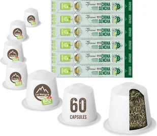 Zakres dostawy: 60 kapsułek herbaty China Sencha Tea La Natura Lifestyle by Tpresso kompatybilnych z Nespresso®*³ á 2 gSkładniki: bio - niesfermentowana herbata (Camellia sinensis)(*²Sprawdź lokalne przepisy dotyczące utylizacji odpadów. Mogą istnieć ograniczenia dotyczące tego, które produkty mogą być kompostowane. | Functional Food Grono GmbH i La Natura Lifestyle nie są w żaden sposób powiązane, wspierane ani sponsorowane przez Nespresso®. Nespresso® jest zastrzeżonym znakiem towarowym Société des Produits Nestlé S.A. | * Kapsułki kompatybilne z systemem Nespresso®* nie nadają się do systemu Nespresso®* Vertuo lub Professional (kapsułki).