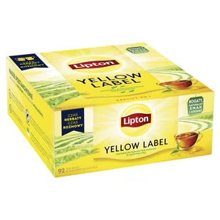 Lipton Yellow Label to jedna z najbardziej rozpoznawalnych czarnych herbat dostępnych na rynku. Jej intensywny smak to zasługa dodatku esencji ze świeżo wyciśniętych liści herbaty. W jednym opakowaniu znajduje się 92 torebki.