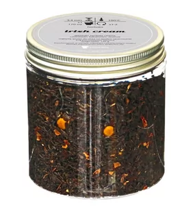 herbata znajduje się w specjalnym pojemniku do przechowywania żywności smak: aromatyczny krem irlandzki składniki: herbata czarna, czekoladki, kakaowiec, aromat wymiary pojemnika: 9,9x9,3 cm pojemność: 120 g Kraj pochodzenia Niemcy