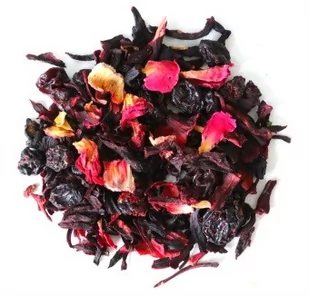 Smak: delikatnie różany z nutą malinySkładniki: hibiskus, rodzynki, czarny bez, kwiat róży, aromat