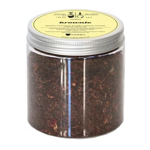 Herbata - brownie Opakowanie: 150g Smak: słodko czekoladowy Składniki: honeybush, kawałki czekolady, karmelki, aromat, pączki róż Herbata w specjalnym pojemniku Veki do wielokrotnego przechowywania herbaty i żywności. Wymiary pojemnika: 99mm - wysokość x 93mm – szerokość Kraj pochodzenia:
