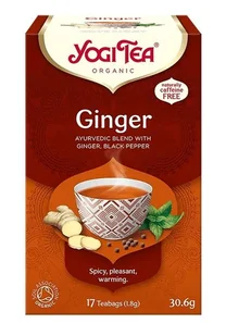 Herbata Yogi Tea Ginger została stworzona w oparciu o oryginalne, ajurwedyjskie receptury, wg. których imbir jest jednym z najważniejszych składników. Nadaje ostrości i działa rozgrzewająco, zapewniając wewnętrzne ciepło.