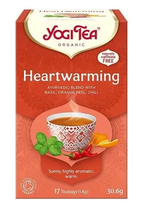 Herbata Yogi Tea Heartwarming Radość życia to ajurwedyjska herbata z aromatyczną bazylią, orzeźwiającą skórką pomarańczy i dodatkiem pikantnego chili dla wszystkich, którzy chcą poczuć się dobrze! Którzy chcą poczuć prawdziwą Radość Życia!