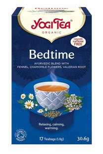 Herbata Yogi Tea Bedtime to ajurwedyjska herbata w wygodnej formie torebek do zaparzania, idealna na łagodne zakończenie dnia, o subtelnym działaniu wyciszającym, dzięki zawartości waleriany (korzenia kozłka lekarskiego), kopru włoskiego i kwiatu rumianku.