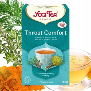 Yogi Tea Throat Comfort to ajurwedyjska herbata ziołowa, stworzona z myślą o naturalnym wsparciu gardła i strun głosowych. Jej receptura łączy lukrecję, tymianek i koper włoski, które od wieków znane są ze swojego działania kojącego.