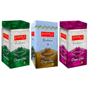 Impra zestaw 3 herbat liściastych Czarnych i Zielonych w Puszce 3 x 200 g